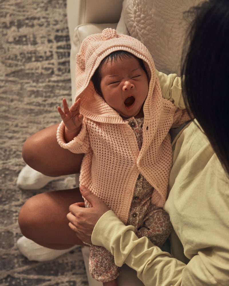 Macacão em bombazine com laço rosa estampadodo