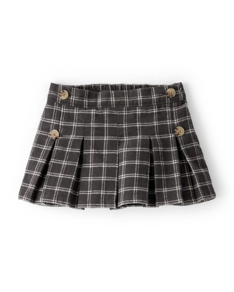 Conjunto de uma peça para bebé menina, com saia estampada e collants embutidos. Ideal para combinar com t-shirts, blusas ou camisolas, oferecendo conforto e estilo nos dias frios.