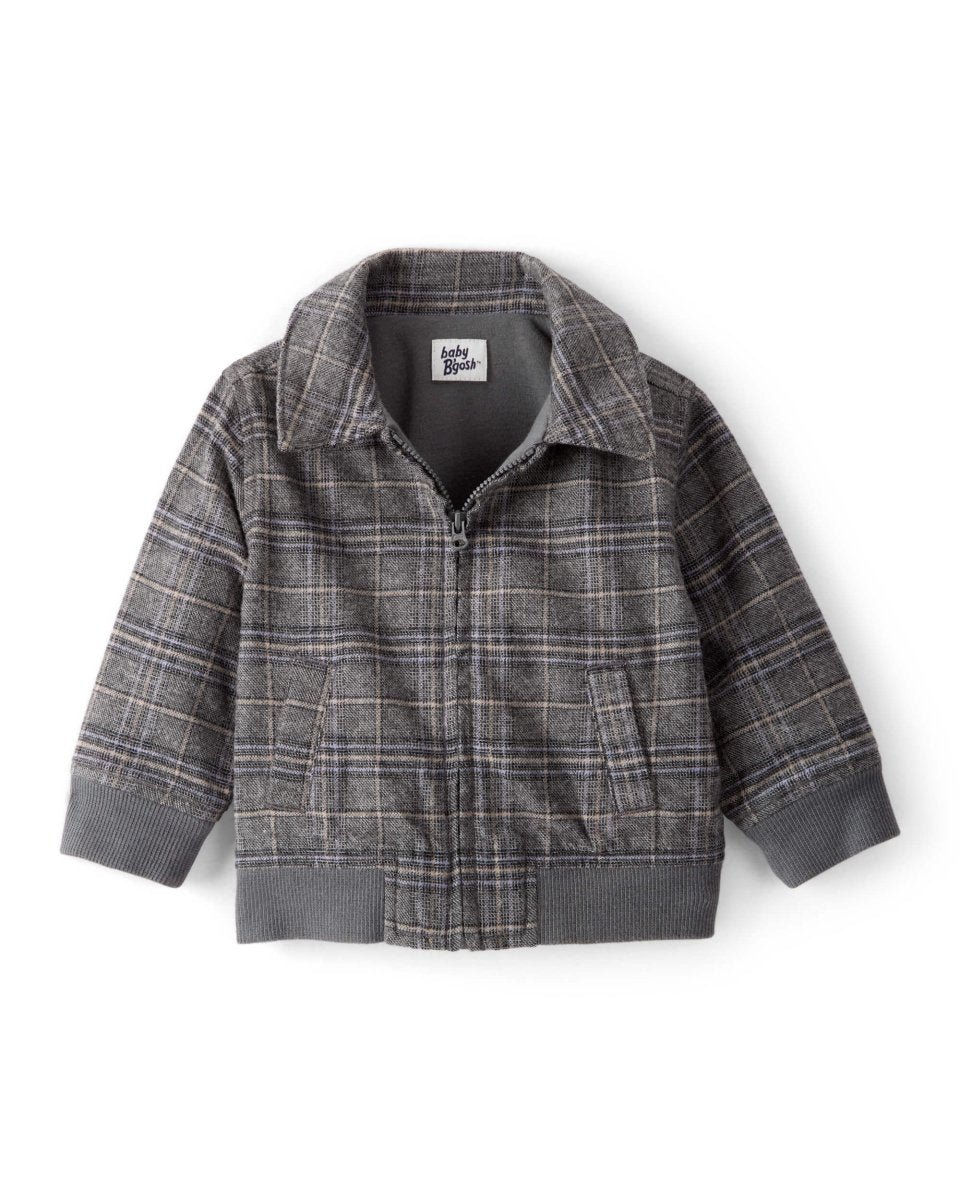 Chaqueta para bebé niño con diseño de cuadros grises. Confeccionada en tejido resistente y cómodo, es ideal para climas frescos y para combinar con diferentes looks.