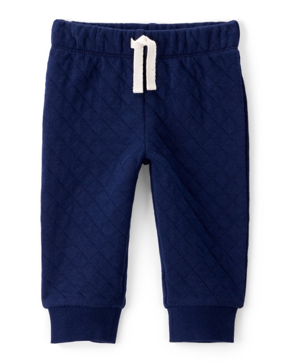 · Pantalón con cintura elástica cubierta y puños acanalados.