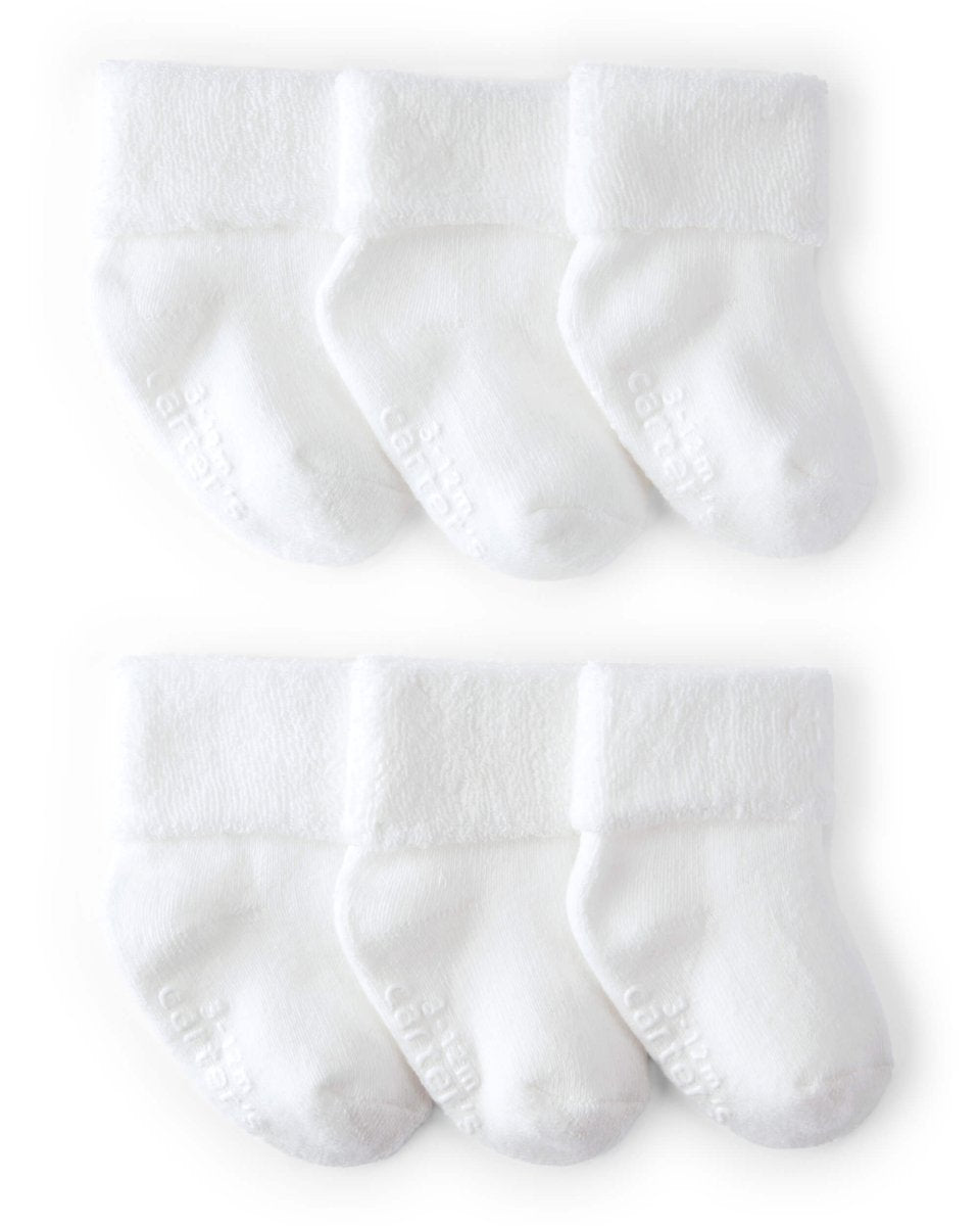 Este pack de 6 botitas de Baby B’gosh es perfecto para mantener los pies del bebé cómodos y calentitos. En color blanco y con tejido tipo toalla (terry), son suaves, absorbentes y versátiles para cualquier ocasión.