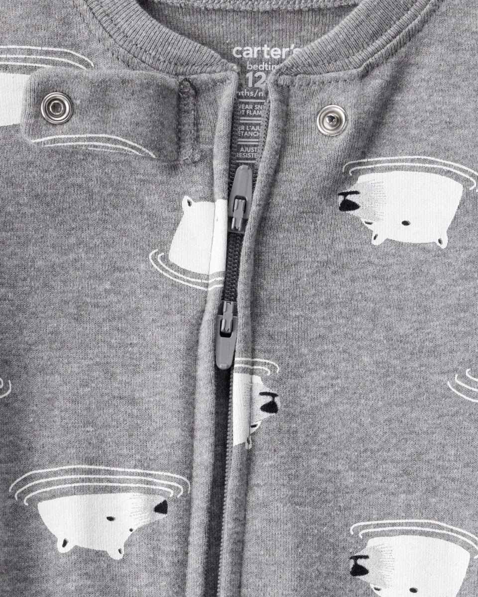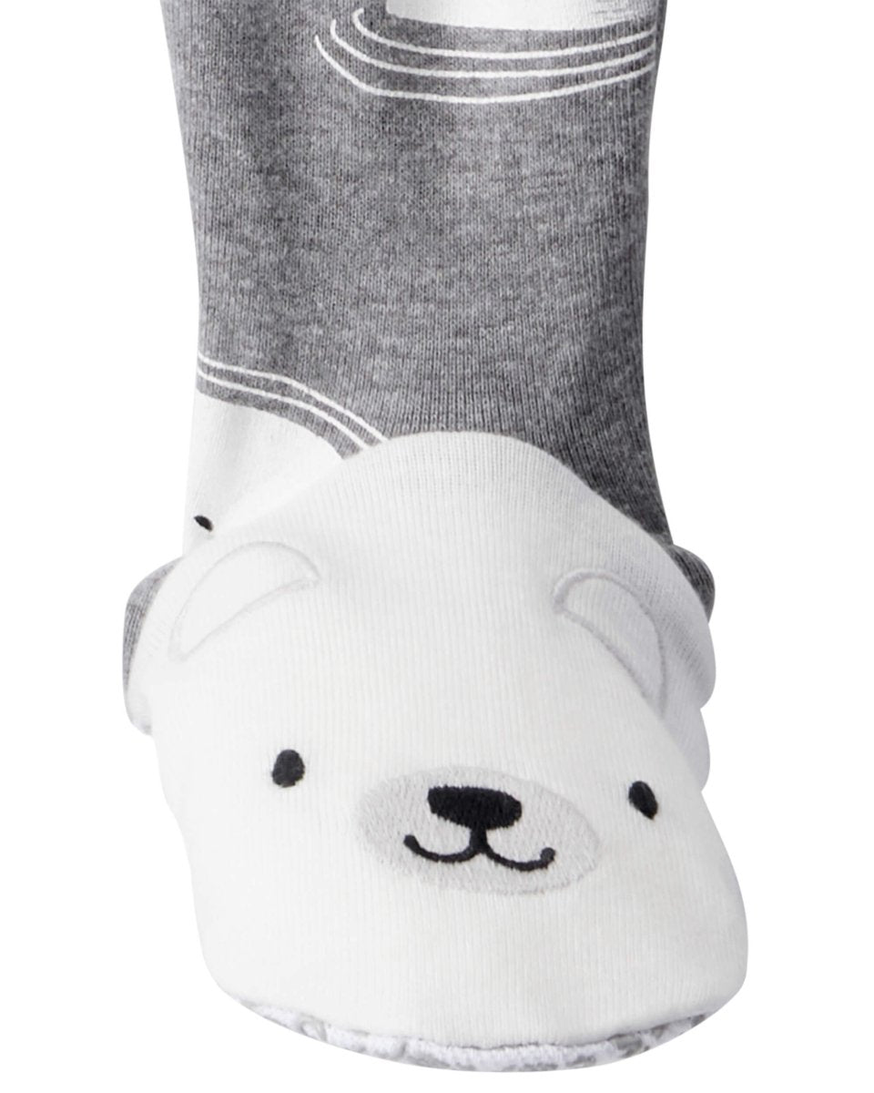 Lleva la dulzura del invierno a la hora de dormir con este pijama de oso polar. Su tejido de algodón cuida la piel del bebé, ofreciendo un tacto suave y cómodo durante toda la noche. El dibujo del osito aporta un aire encantador y acogedor.