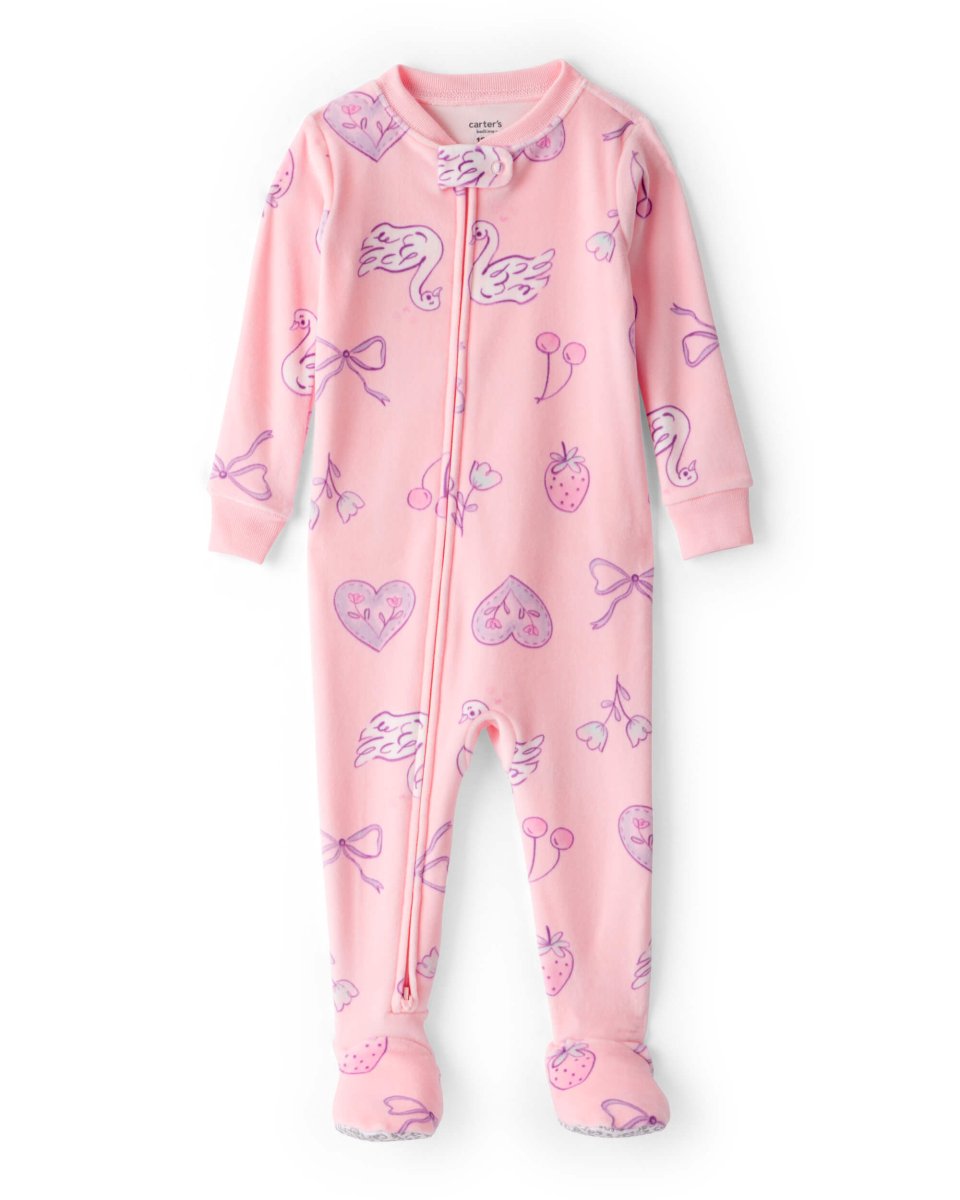 Este pijama enterizo con pies, confeccionado en suave tejido DreamPlush, es ideal para mantener a tu peque cómodo y abrigado durante las noches frías. Su encantador estampado de cisnes añade un toque dulce y mágico a la hora de dormir. Incluye cremallera de tobillo a barbilla con solapa protectora, puños y cuello acanalados, y pies integrados con suela antideslizante para mayor seguridad. Gracias a su ajuste ceñido y tejido suave, es perfecto para noches de invierno y mañanas perezosas en casa.