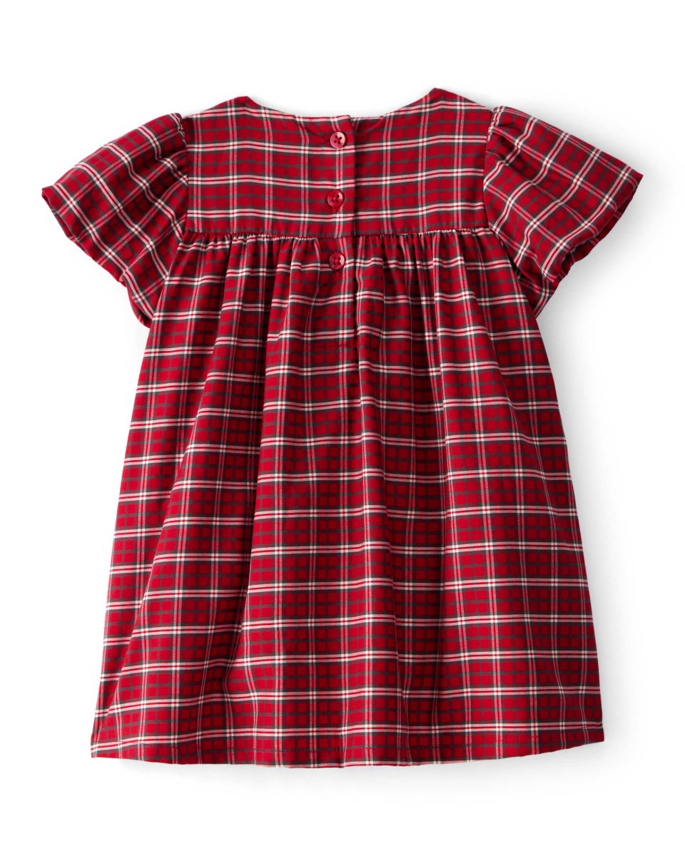 Vestido para bebé niña con estampado de cuadros rojos y braguita a juego. Confeccionado en algodón ligero y transpirable, ideal para días cálidos. Su diseño de manga corta y corte cómodo permite libertad de movimiento, perfecto para ocasiones casuales, picnics o reuniones familiares. Combínalo con zapatillas o sandalias para un look fresco y alegre.