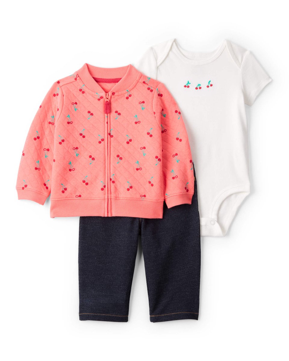 Este conjunto de 3 peças oferece a combinação perfeita entre conforto e estilo. Concebido para acompanhar o bebé a qualquer hora do dia, inclui peças macias e fáceis de combinar, com um design encantador que completa o look sem esforço.