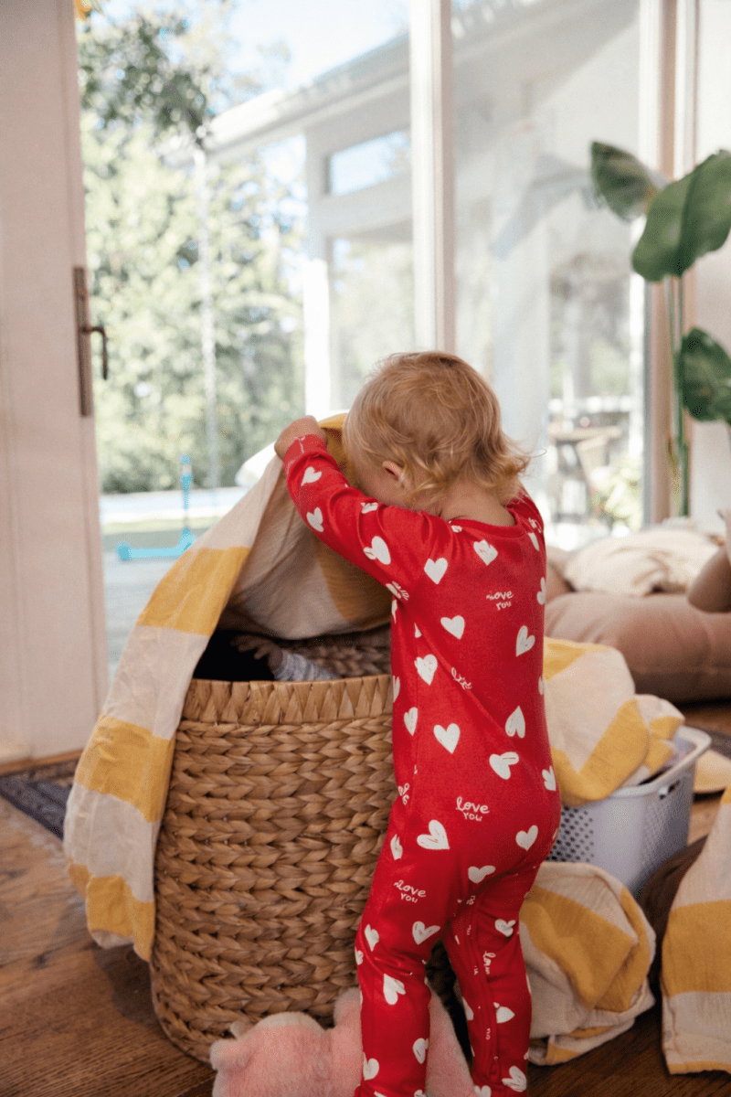 Torne a hora de dormir ainda mais aconchegante com este pijama vermelho com estampado de corações. Feito de algodão macio e respirável, mantém o seu bebé quente e, ao mesmo tempo, é leve. O ajuste perfeito e os punhos elásticos impedem que o pijama suba durante a noite.