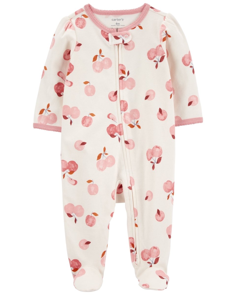 Pijama de peça única de algodão, com pé, desenho maçã
