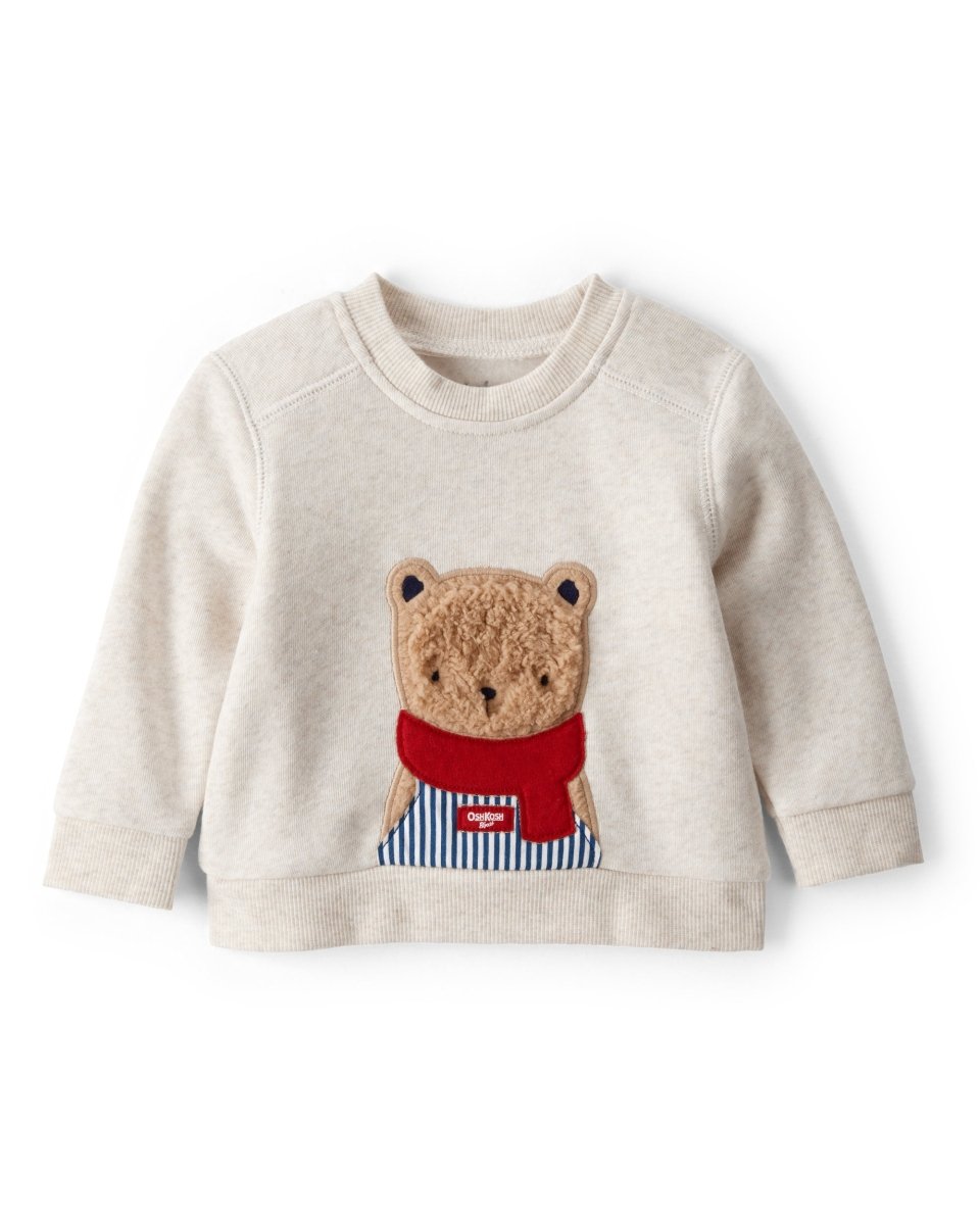 Este moletom cinzento mesclado com estampado de urso é perfeito para os dias frescos. A sua textura macia e a ilustração adorável criam um aspeto aconchegante e quente para o seu bebé.